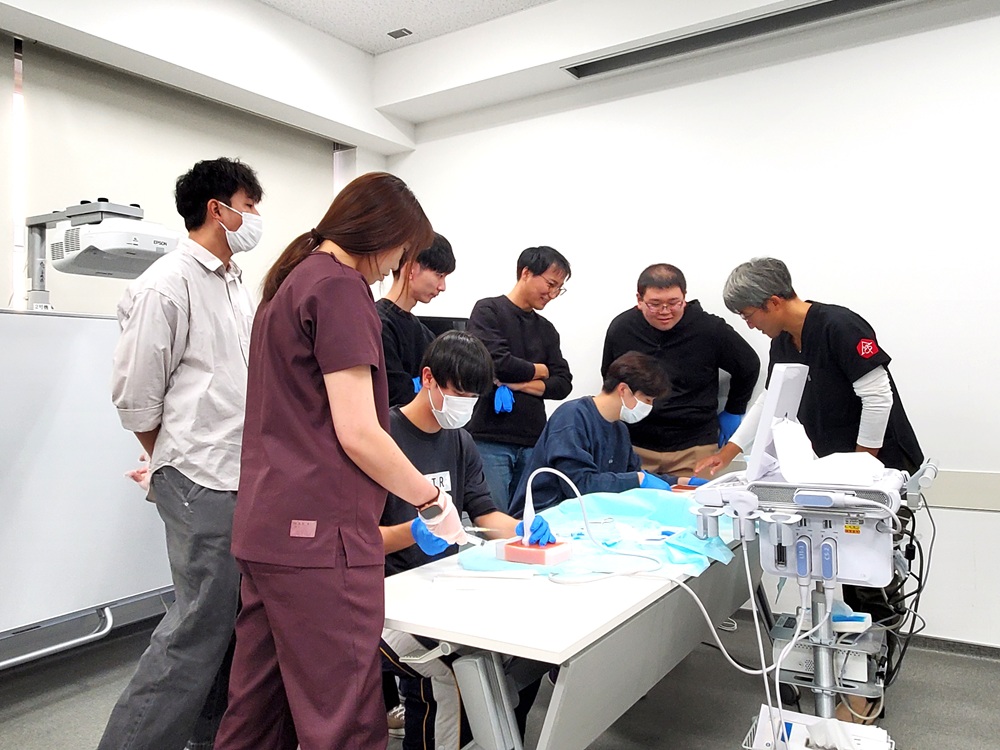 講演後は、超音波ワークショップにて、CVカテーテル挿入の実習を行いました。