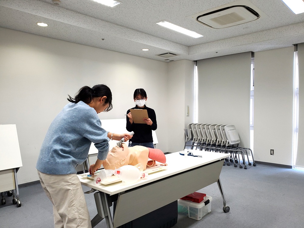 最後は、挿管シュミレーターを使って繰り返し学習!先生たちからコツを伝授!