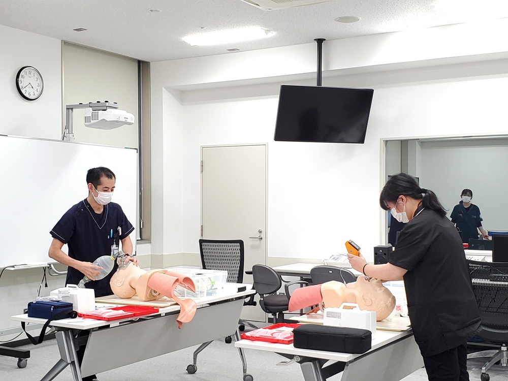 挿管困難症例の見極め方講義後にシミュレーターを用いて挿管実習を行いました。