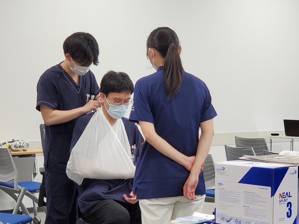 三角巾の結び方&松葉杖の調整