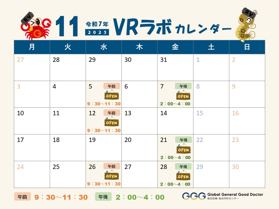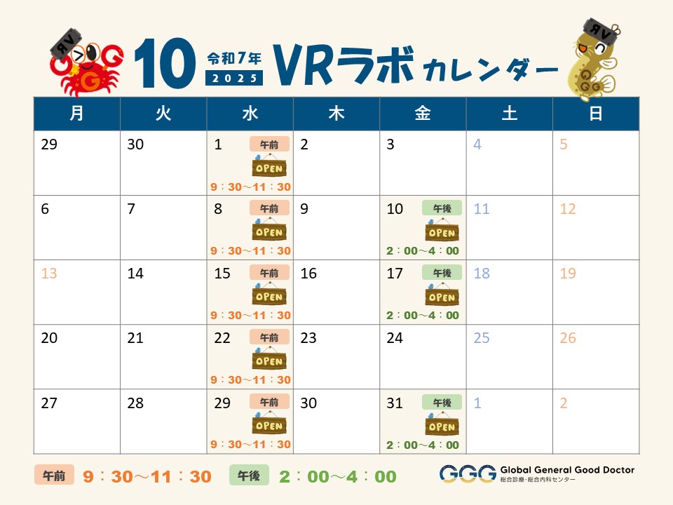 10月・11月 VRラボOPENカレンダー 2025.09.23