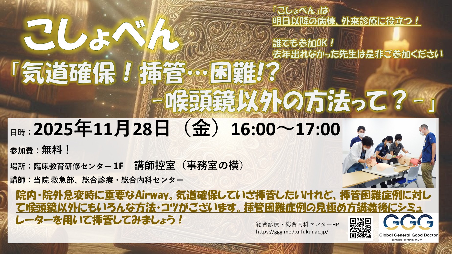 こしょべん(福井大学医学部附属病院 初期研修医勉強会)のお知らせです。