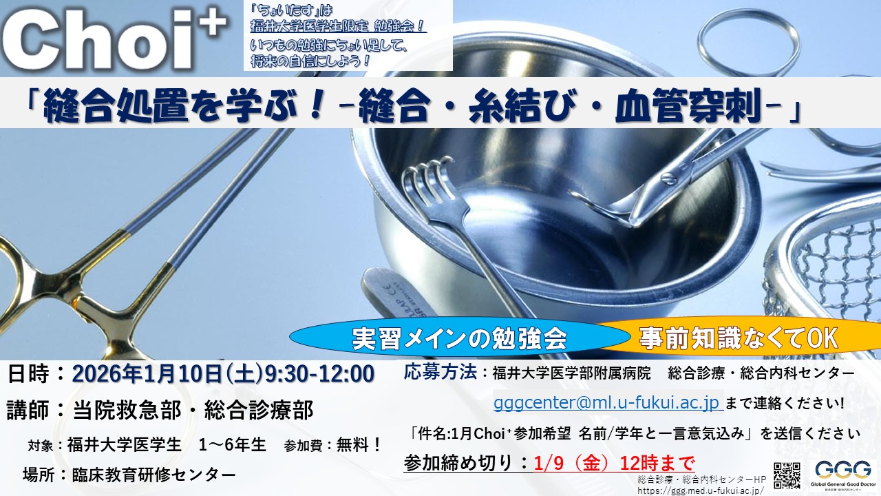 1/10 Choi⁺(ちょいたす)医学生限定の勉強会を開催します! 2025.12.18
