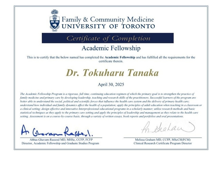 私はトロント大学家庭医学・地域医療部門(DFCM)のリサーチチームで研究員としての活動を始めました。
